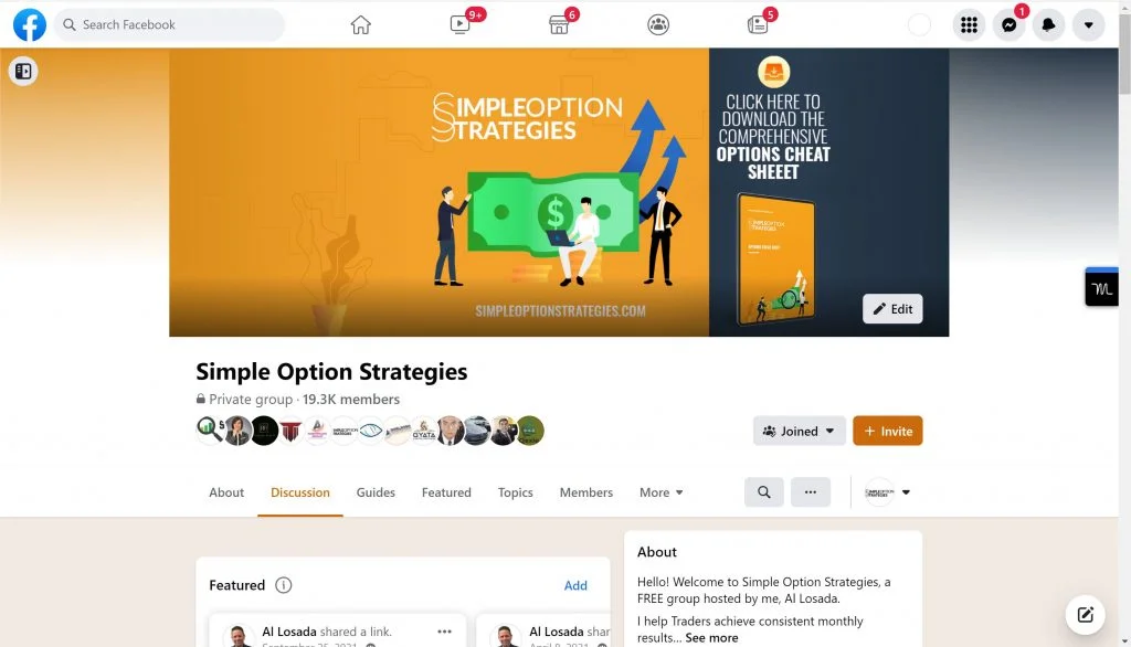 A free Facebook group hosted by me, Al Losada. This is a group built for options traders (just like you) of all expertise levels to provide value and share ideas.